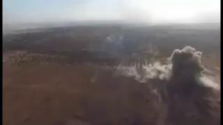 Видео показывает уничтожение лидера банды Ашрар Аль Шам, Абу Мухамеда Аль Сари, когда он ехал на мотоцикле на юге Алеппо. Также вместе с ним уничтожен грузовик и несколько боевиков.